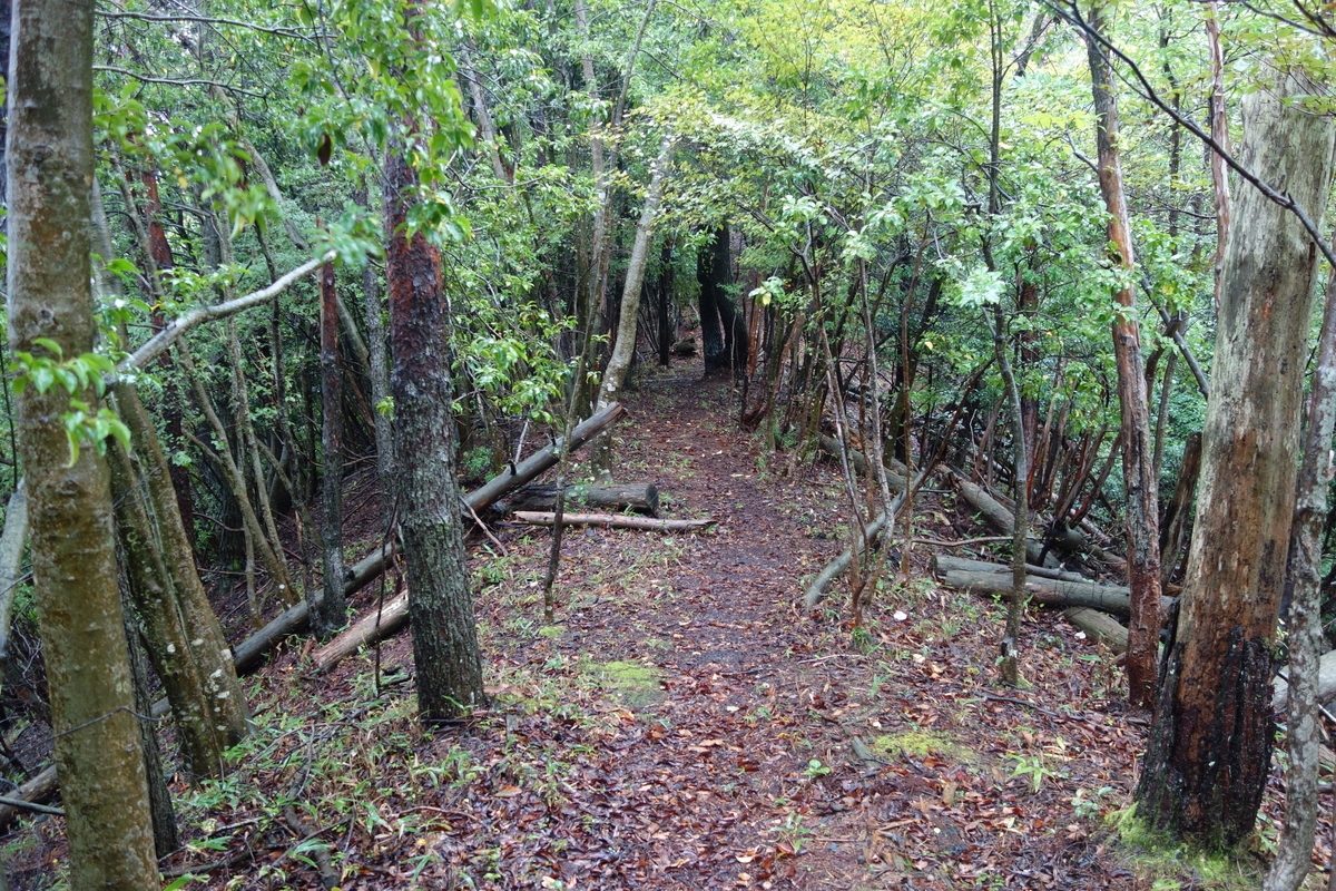 尾根道を進んで行く。三角山と城山の中間地点には、子持ち松砦跡がある。