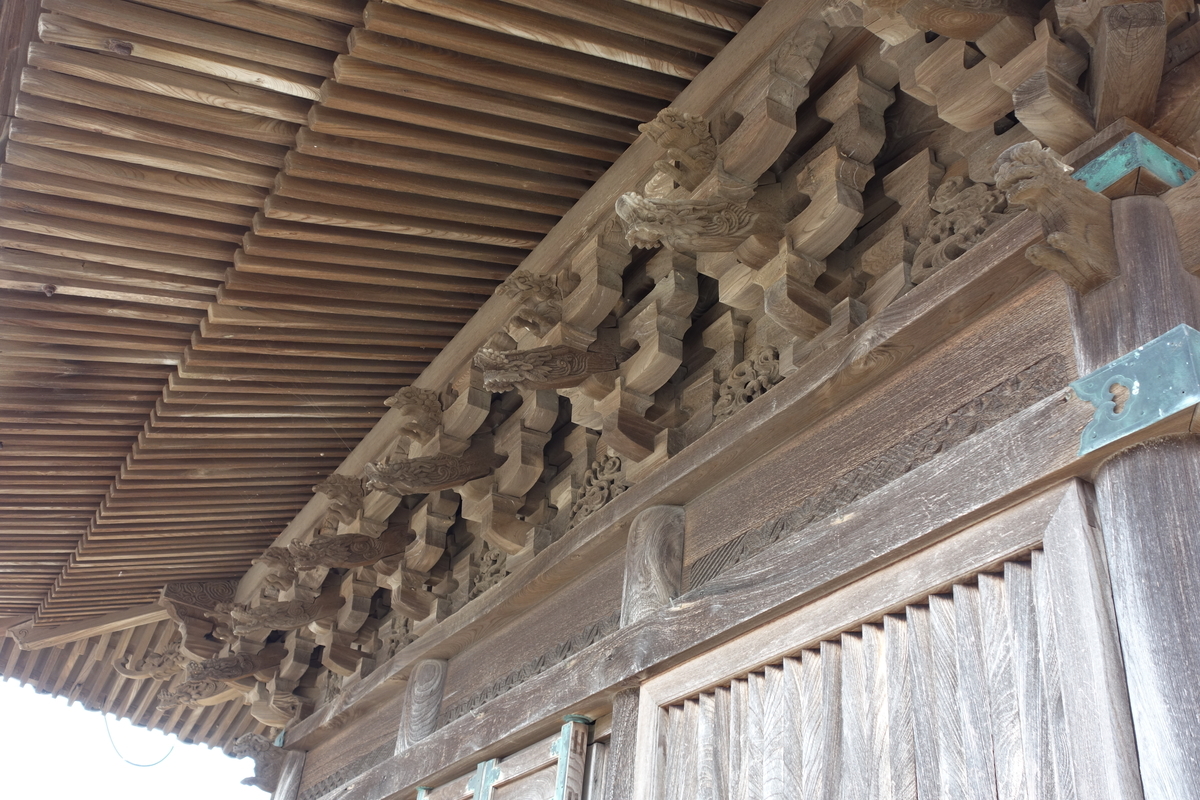 細部の彫刻の見事さや、斗栱と尾垂木の複雑な構成など、見応えのある建物だ。